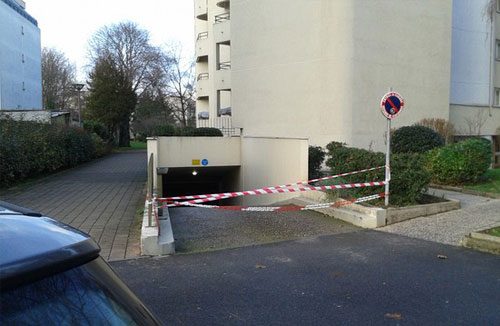 Avenue Léon Blum, les véhicules peuvent accéder au parking souterrain de la copropriété par deux accès : l’entrée, située près du n° 14, et la sortie, située près du n° 2. Après les affiches datées du 4 février 2013 et du…