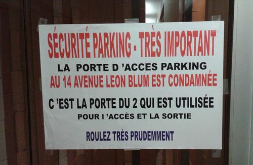 Accès parking bloqué (au n° 14 av. Blum)